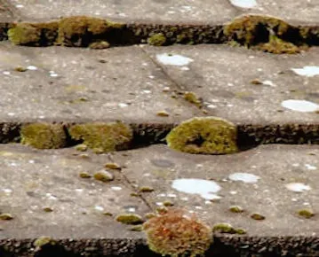 Although mosses do not cause direct damage to roof tiles, they increase water capillary creep causing in the fullness of time corrosion of the fixings and ageing of the overall structure. They can cause some lifting when growing in the vertical bond. As they absorb moisture, they also add weight to roofs and when they become heavy enough or dislodged by bird activity etc, they can fall in gutters and down pipes and cause blockages.